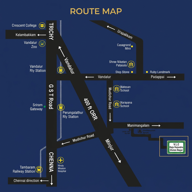 Raja Rajendra Cholan Nagar is a premium DTCP-approved villa plot community strategically located at Mudichur, near West Tambaram.